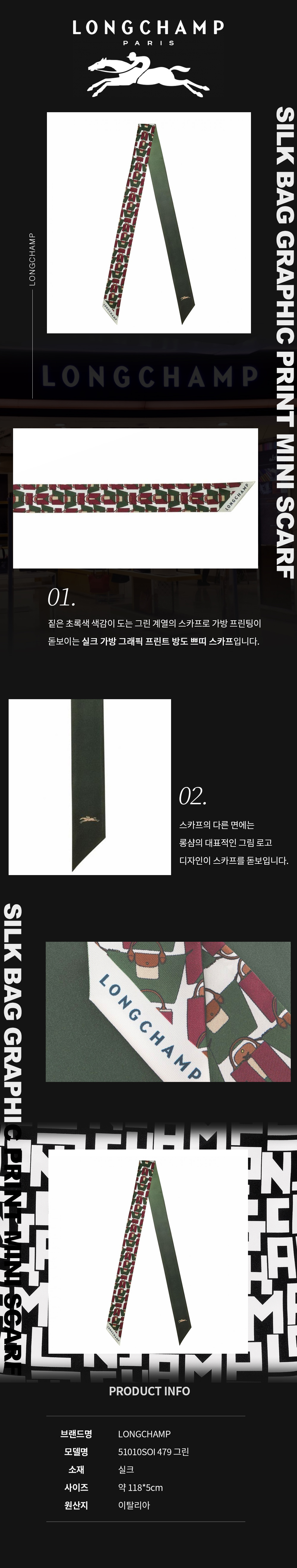 롱샴 롱샴 그래픽 프린트 실크 쁘띠 스카프 51010SOI 479