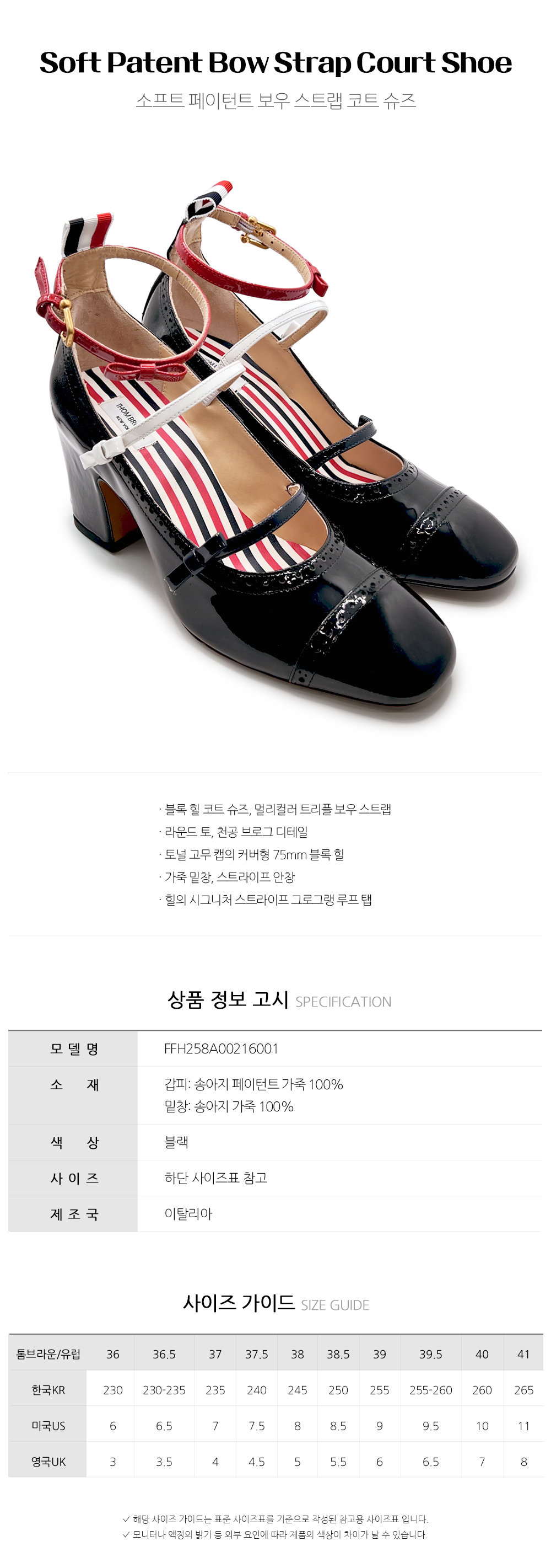 톰브라운 톰브라운 소프트 페이턴트 보우 스트랩 코트 슈즈 FFH258A 00216 001